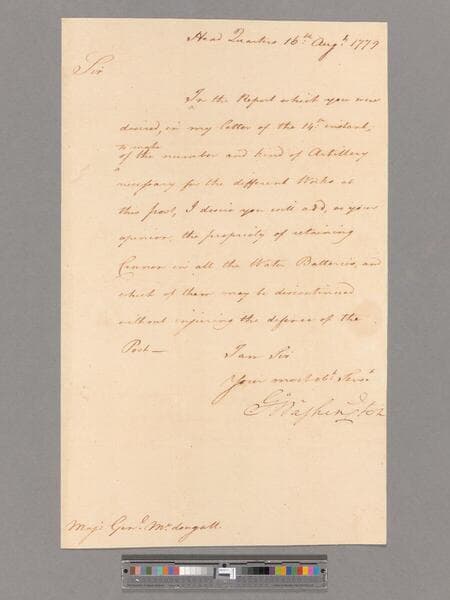 Letter from George Washington, headquarters, to Major General Alexander McDougall