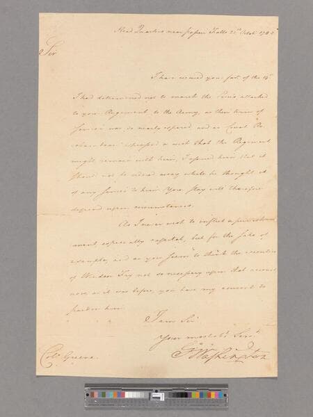 Letter from George Washington, headquarters near Passaic Falls, to Colonel Christopher Greene