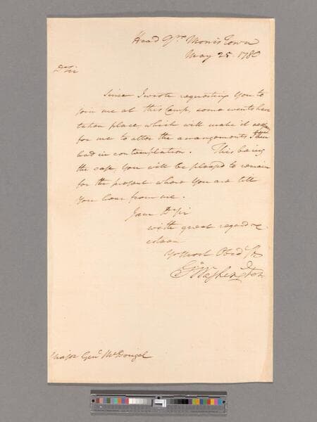 Letter from George Washington, headquarters Morristown, to Brigadier General Alexander McDougall