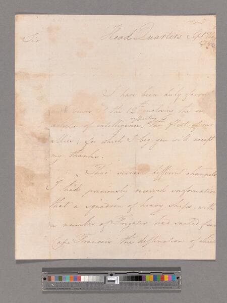 Letter signed. In hand of David Humphreys. Place name only given as "headquarters." (2 pages)