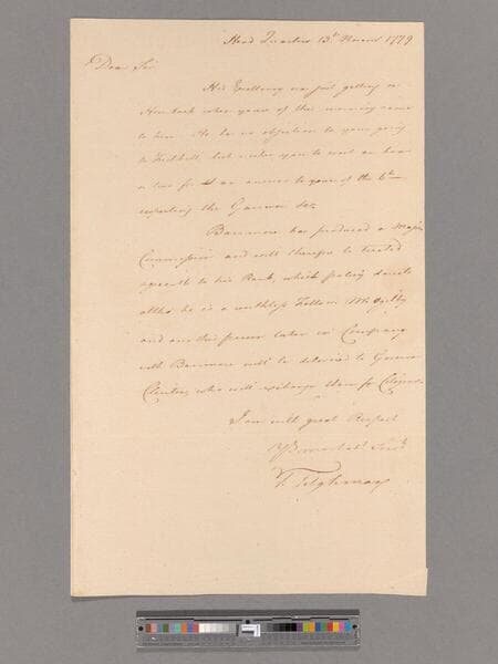 Letter signed. In hand of Tench Tilghman; endorsed by McDougall.