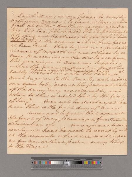 Autograph draft of sketch. John McHenry autograph note signed on reverse. (1 page)