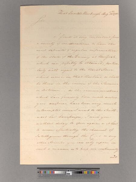 Letter from George Washington, headquarters Newburgh, to George Clinton