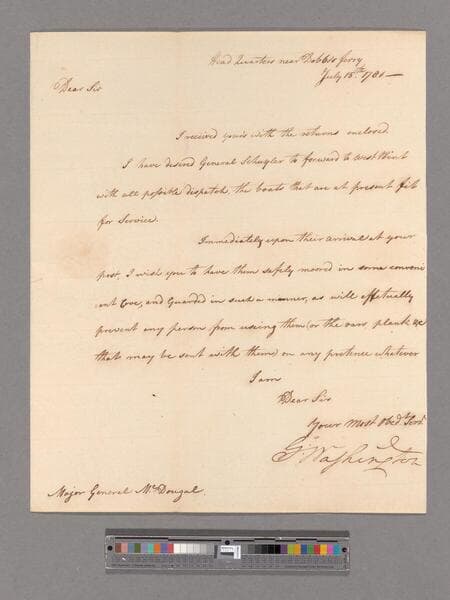 Letter from George Washington, headquarters Dobbs Ferry, to Major General Alexander McDougall