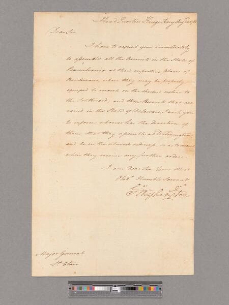 Letter from George Washington, headquarters Middlebrook, to Major General Arthur St. Clair