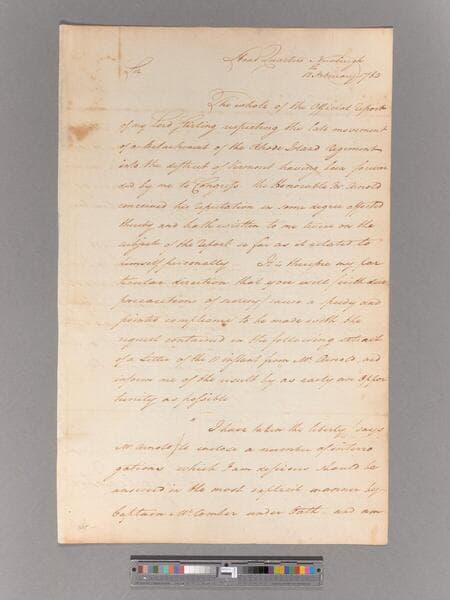 Letter from George Washington, headquarters Newburgh, to Jonathan Arnold
