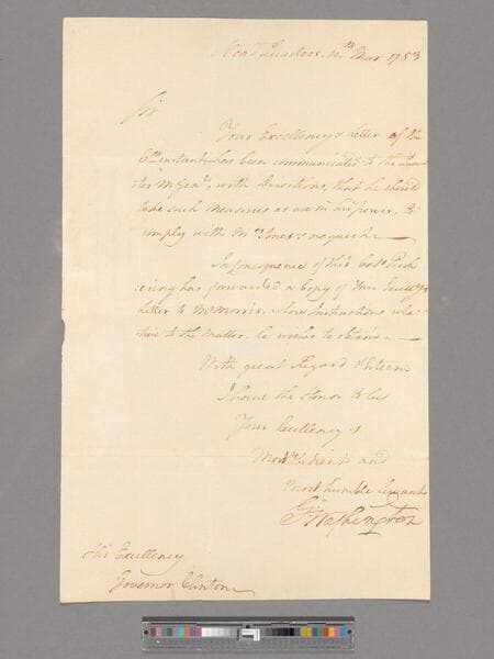 Letter from George Washington, headquarters Newburgh, to George Clinton