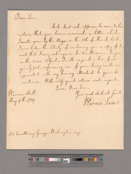 Letter from Warner Lewis, Warner Hall, to George Washington