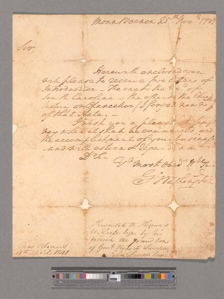 Letter from George Washington, Mount Vernon, to General Henry Knox