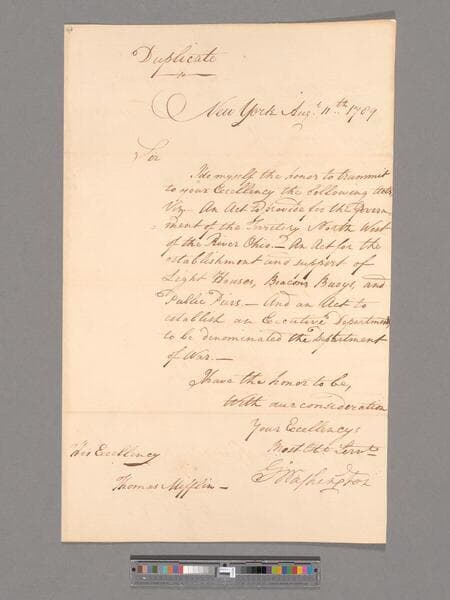 Letter from George Washington, New York, to Thomas Mifflin
