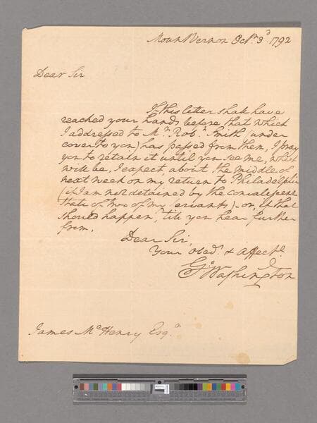 Autograph letter signed, with signed cover (franked). Endorsed by McHenry. (1 page)