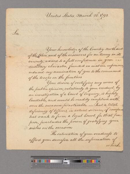 Letter from George Washington, Philadelphia, to Arthur St. Clair