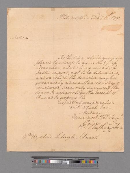 Letter from George Washington, Philadelphia, to Angelica Schuyler Church