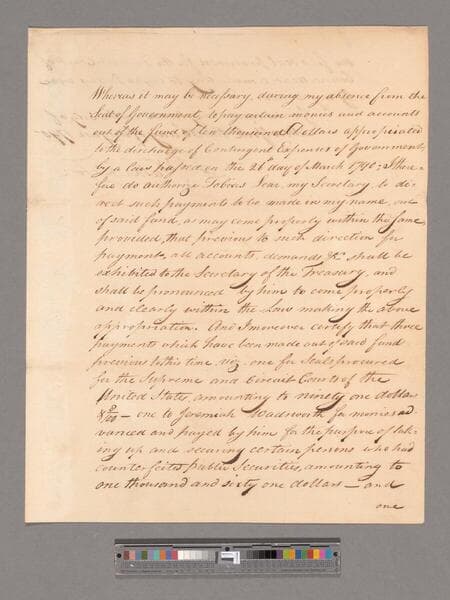 Power of Attorney from George Washington, New York, to Tobias Lear, New York
