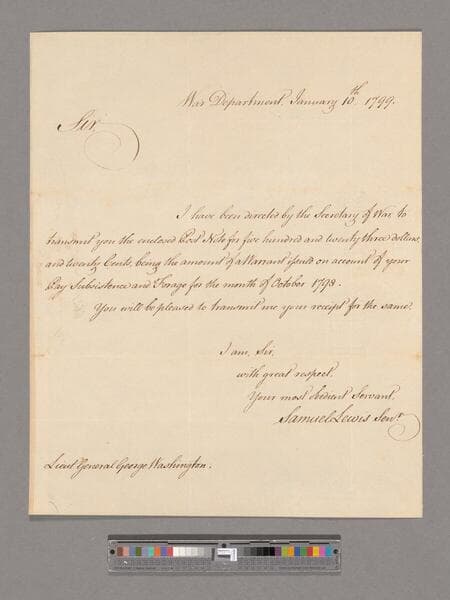 Letter from Samuel Lewis, War Department, to George Washington