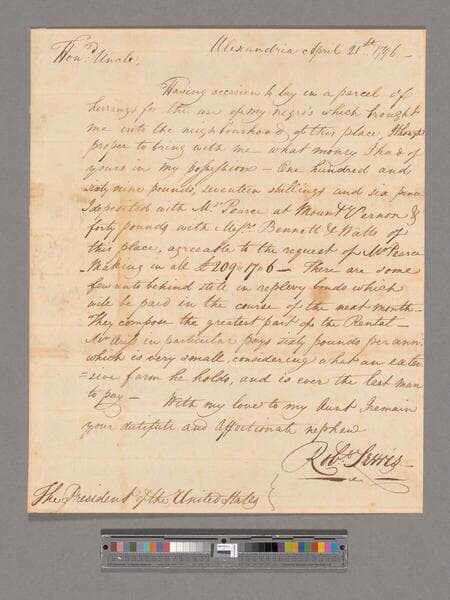 Letter from George Washington, Alexandria, to the Reverend Charles Green