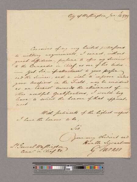 Autograph letter signed. Endorsed by Washington. (1 page)