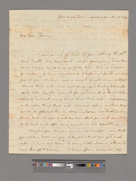 Letter from Martha Washington, Germantown, to Frances Washington