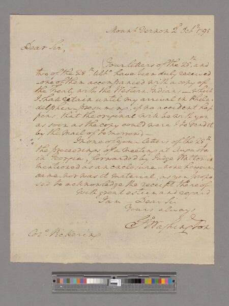 Letter from George Washington, Mount Vernon, to Colonel Timothy Pickering