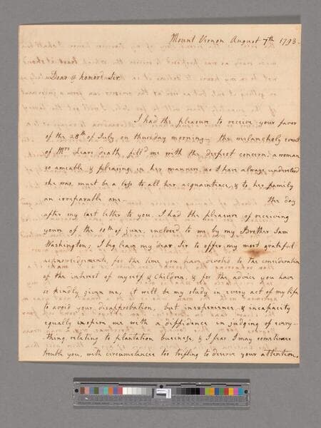 Letter from Frances Bassett Washington, Mount Vernon, to George Washington