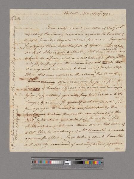 Letter from George Washington, Philadelphia, to Arthur St. Clair