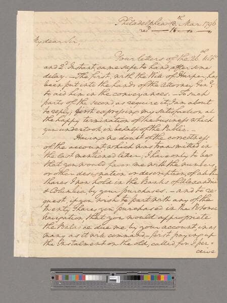 Letter from George Washington, Philadelphia, to Tobias Lear