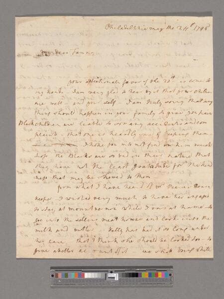 Letter from Martha Washington, Philadelphia, to Frances Washington