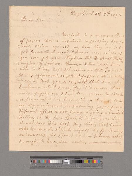 Autograph letter signed. Endorsed by Washington. (3 pages)