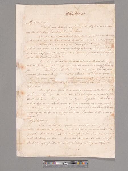 Address by George Washington to the Chiefs and Warriors of the Wabash and Illinois Indians, Philadelphia