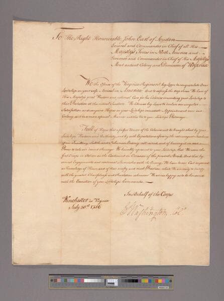 Address to John Campbell, Earl of Loudoun from George Washington and the officers of the Virginia Regiment, Winchester