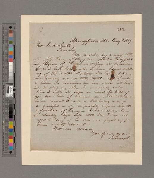 Abraham Lincoln, Springfield, Illinois, letter to Owen Lovejoy