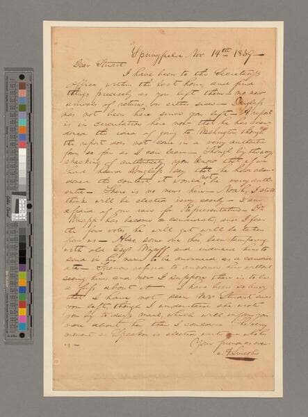Abraham Lincoln, Springfield, Illinois, letter to John Todd Stuart, Washington, D.C