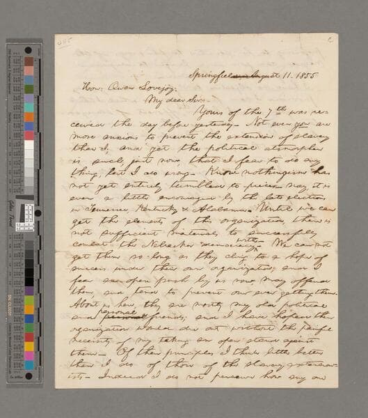 Abraham Lincoln, Springfield, Illinois, letter to Owen Lovejoy