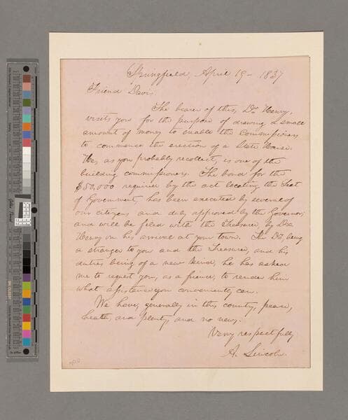 Abraham Lincoln, Springfield, Illinois, letter to Levi Davis, Vandalia, Illinois