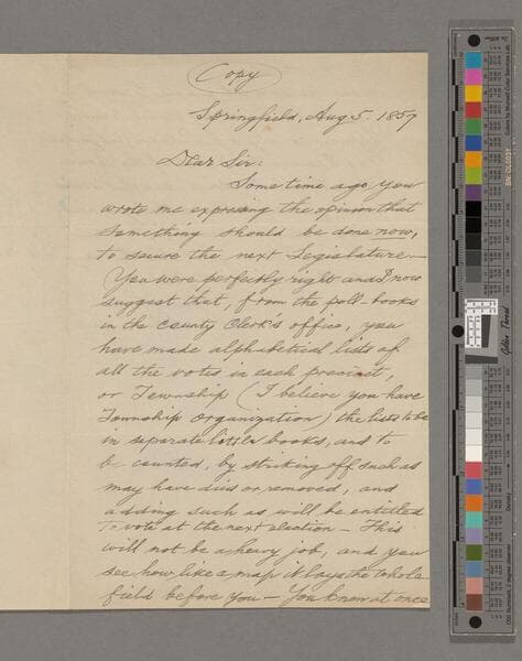 Abraham Lincoln, Springfield, Illinois, letter to Charles Sumner