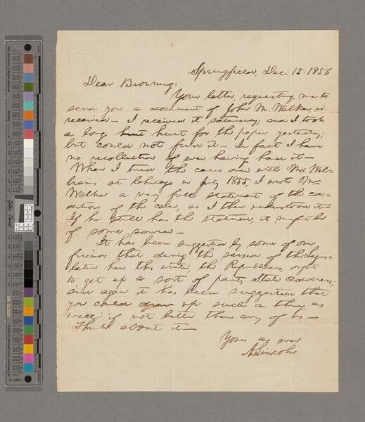 Abraham Lincoln, Springfield, Illinois, letter to Lyman Trumbull