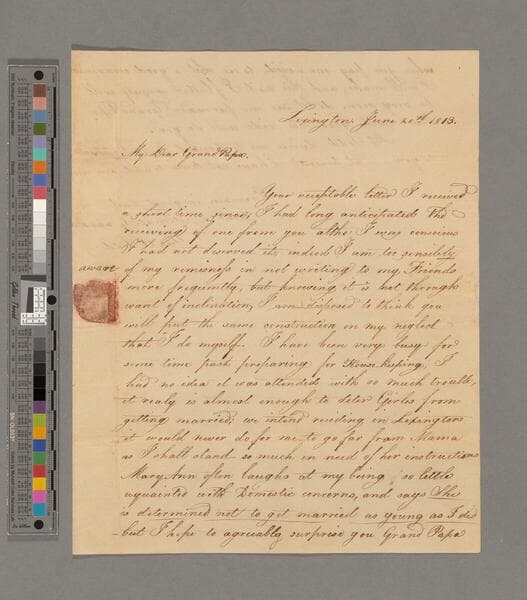 Autograph letter signed. Letter from Mary Todd Lincoln's mother to her grandfather. Includes addressed cover. (2 pages)