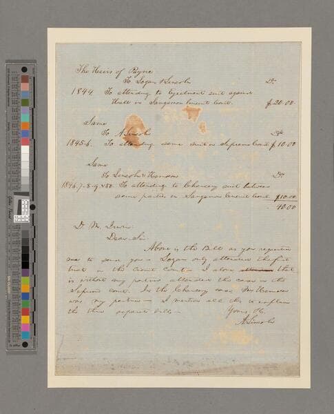 Autograph letter signed. Preceded by a bill statement to the heirs of Payne, 1844-1850, on the same page. (1 page)