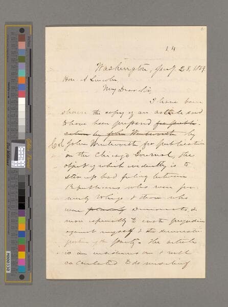 Lyman Trumbull, Washington, D.C., letter to Abraham Lincoln