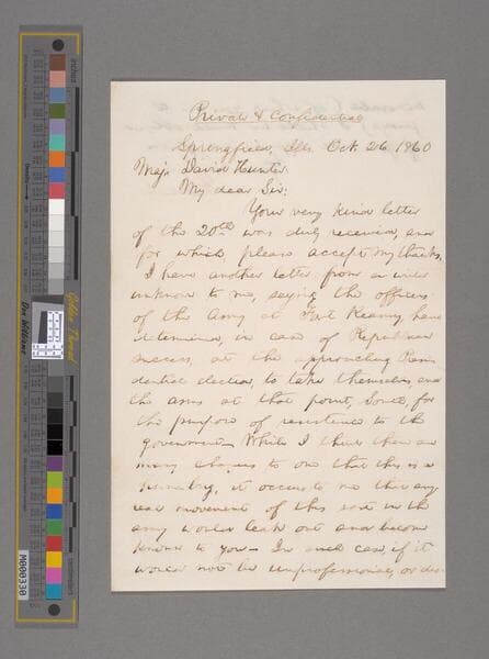 Abraham Lincoln, Springfield, Illinois, letter to David Hunter, Fort Leavenworth, Kansas