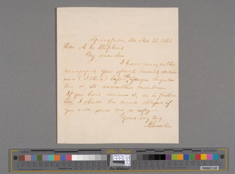 Abraham Lincoln, Springfield, Illinois, letter to Alexander H. Stephens