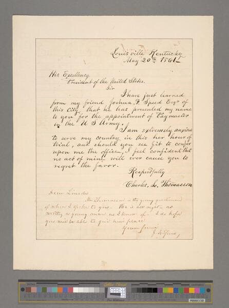 Charles L. Thomasson, Louisville, Kentucky, letter to Abraham Lincoln