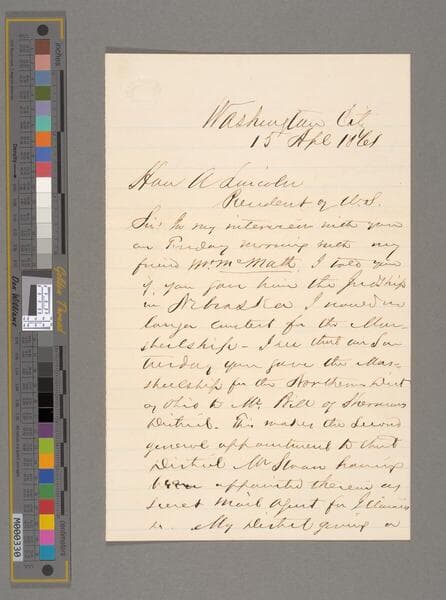 Abraham Lincoln, Washington, D.C., letter to Joseph Holt