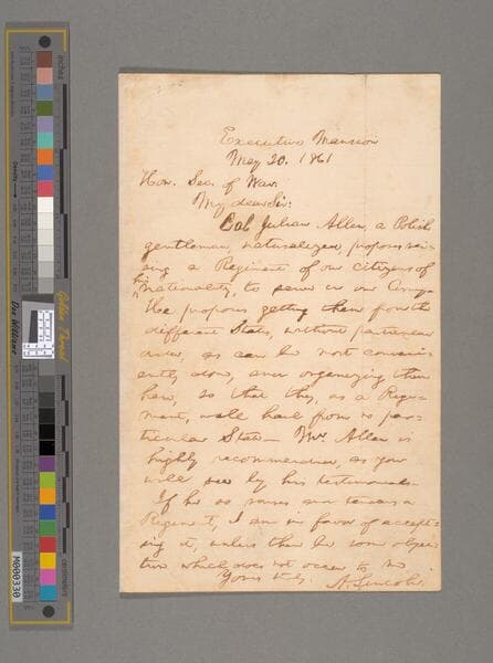 Abraham Lincoln, Washington, D.C., letter to Simon Cameron