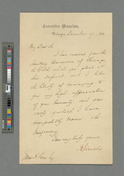 Abraham Lincoln, Washington, D.C., letter to James H. Hoes
