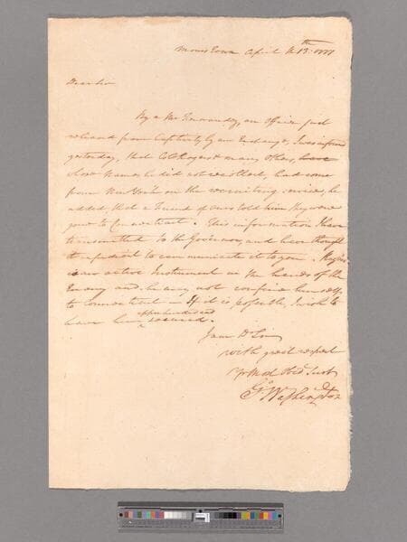 Letter from George Washington, Morristown, to Brigadier General Alexander McDougall