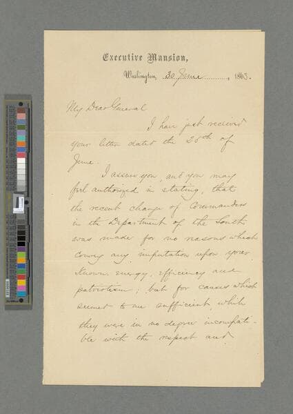 Abraham Lincoln, Washington, D.C., letter to David Hunter