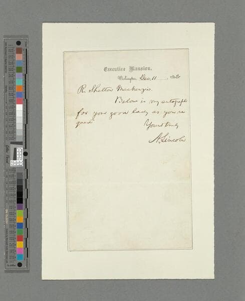 Abraham Lincoln, Washington, D.C, letter to Robert Shelton MacKenzie