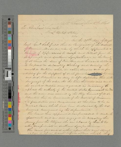 Hamilton R. Gamble, St. Louis, letter to Abraham Lincoln