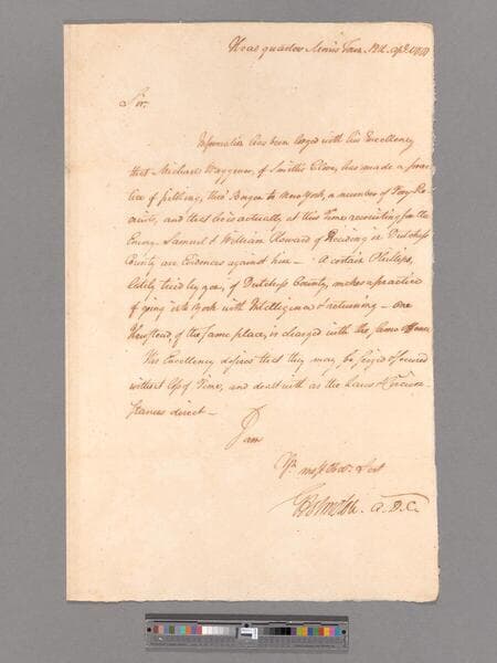 Letter from George Washington, headquarters Morristown, to Brigadier General Alexander McDougall